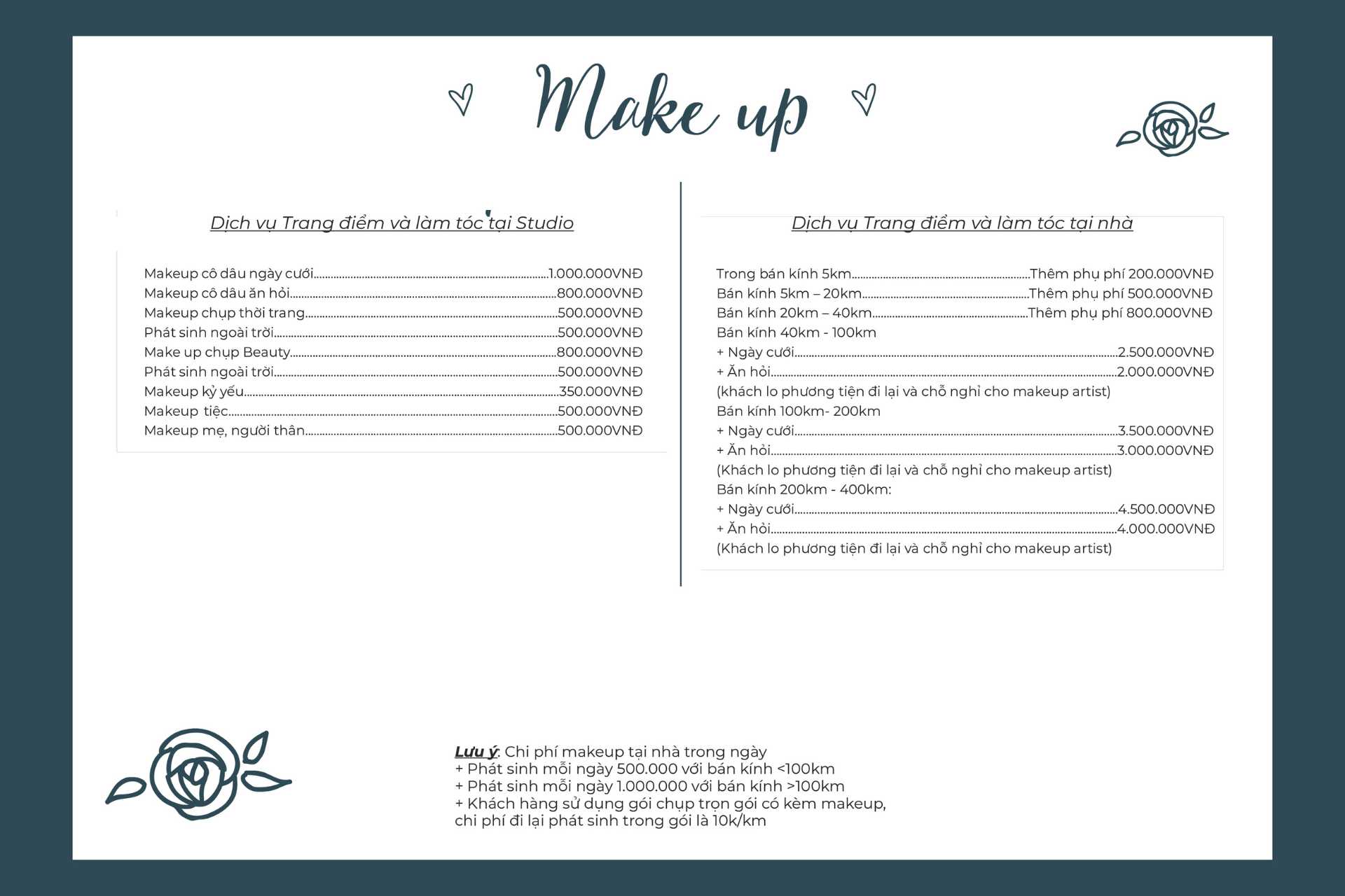 BÁO GIÁ DỊCH VỤ MAKEUP